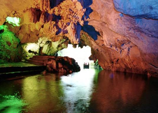 蓬萊仙洞是一個多層次、多階段、多堆積形態(tài)的大型溶洞,全長3000余米,總面積2萬多平方米,呈立交結(jié)構(gòu),分天洞、中洞、地洞、地下河四層結(jié)構(gòu)。主要景點有迎賓廳、探海長廊、東海龍宮、通明宮、迷仙宮、玉嬋宮、銀河長廊、瑤池、南海、潮音殿、送客廳等10多個景點。蓬萊仙洞風景區(qū)是國家AAAA級旅游景區(qū),省級風景名勝區(qū)。