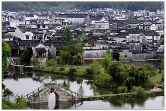 宏村位于黃山的西南麓、黟縣縣城西南11公里處,原是古代黟縣赴京通商的必經(jīng)之處。整個(gè)村落占地約28公頃,其中被界定為古村落范圍的面積有19.11公頃。宏村是徽州傳統(tǒng)地域文化、建筑技術(shù)、景觀設(shè)計(jì)的杰出代表,具有極高的歷史、藝術(shù)、科學(xué)價(jià)值,是徽州傳統(tǒng)建筑文化的真實(shí)見證。宏村已被聯(lián)合國教科文組織列入了《世界文化遺產(chǎn)名錄》。