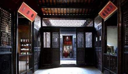 三河古鎮(zhèn)在建筑體量上一般為1~2層,一層為鋪,二層為宅,多為前鋪后宅,坊宅混合。古鎮(zhèn)建筑平面布局由“合院”作為基本單元組合而成,以三合院、四合院為主,既有北方的合院形式,又有南方的天井院落。院落坐北朝南,布局中軸對稱,平面形式主要表現(xiàn)為“凹”字型、“回”字型、“H”字型、“日”字型等!鞍肌毙推矫婕慈g式,為三間一進樓房,天井在前,廳堂居后,左右?guī)糠至袃蓚;“回”形平面即四合式,為三間兩進樓房,是兩組三間式相向的組合,天井置中,廳堂靠后,四廂房分列四角;“H”形平面即三間兩進堂中間為兩個三間式相背組合;“日”形平面即三間三進式,第一進與第二進,第二進與第三進之間各有天井,即兩個“凹”形平面的縱向并置。在大戶民居中,二層設有轉心樓,是圍繞天井的環(huán)形回廊,憑欄而立,對面及上下講話可以清晰地聽見,具有四合院式徽派風格建筑的特點。民居頂部建設有向內凹曲的廡殿頂,為江淮地區(qū)古民居獨有的空間形式。