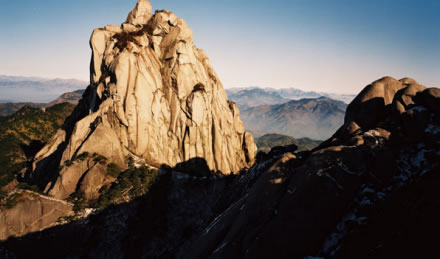 天柱峰,又名筍子尖,海拔1488.4米,為江淮地區(qū)最高山峰。安徽天柱山又名皖山,安徽省簡(jiǎn)稱“皖”由此而來。天柱山在長(zhǎng)江北岸、安徽省潛山市境內(nèi),其主峰高聳挺立,如巨柱擎天,因而稱為天柱峰,山也就此得名。唐代大詩人李白曾寫了一首贊美天柱山風(fēng)景奇秀的詩“江上望皖公山”(皖公山即天柱山),詩云:“奇峰山奇云,秀木含秀氣。清晏皖公山,巉絕稱人意”