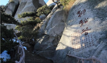 神秘谷,在天池峰南,又稱司元(玄)洞。神秘谷石由龍宮、迷宮、逍遙宮等組成,自龍吟虎嘯崖入口,穿過五指峰,緊傍飛來峰,環(huán)繞銜珠峰,直達(dá)渡仙橋,全長(zhǎng)400多米,落差100多米。谷內(nèi)洞上有洞,洞里有洞,有的相連,有的間隔,道家視此地為洞天福地,道書稱之為第十四洞天。舊志稱此洞“空邃可容萬余武,下有水晶巖,直通滄海。后呼為總官洞。”
