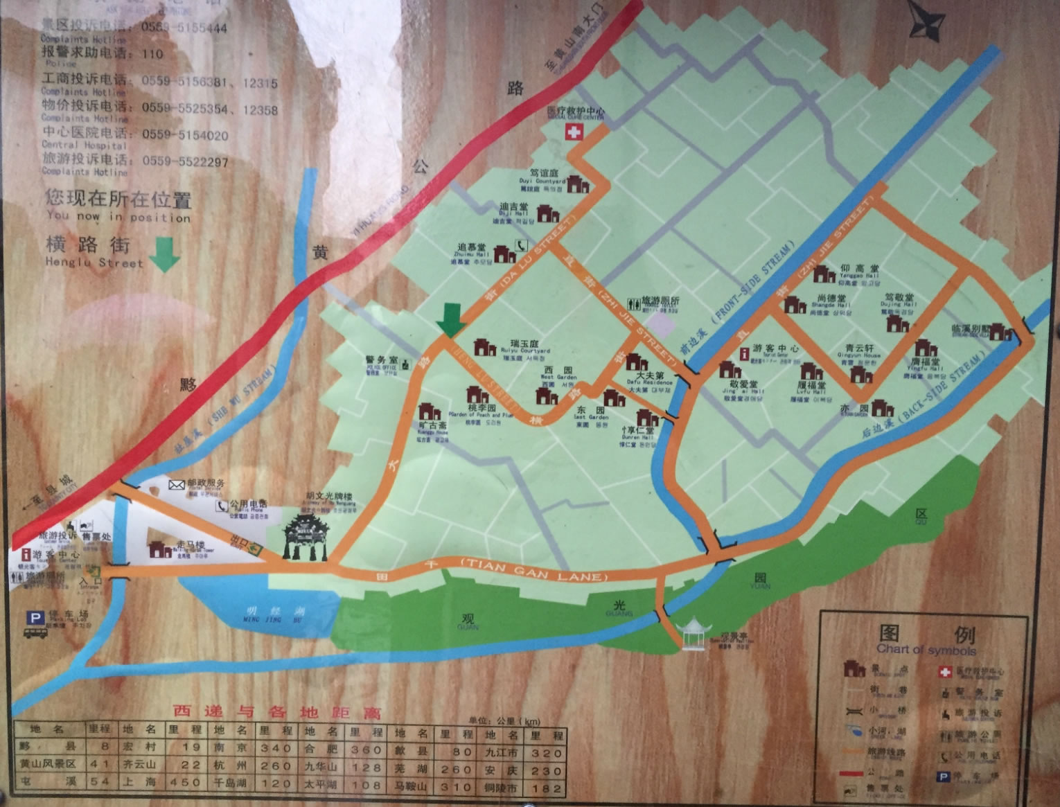 西遞、宏村古民居位于中國東部安徽省黟縣境內(nèi)的黃山風景區(qū)。宏村始建于南宋紹興年間(公元1190—1194年),原為汪姓聚居之地,綿延至今已有800余年。它背倚黃山余脈羊棧嶺、雷崗山等,地勢較高,經(jīng)常云蒸霞蔚,有時如濃墨重彩,有時似潑墨寫意,真好似一幅徐徐展開的山水長卷,因此被譽為“中國畫里的鄉(xiāng)村”。著名景點有南湖風光、南湖書院、月沼春曉、牛腸水圳、雙溪映碧、亭前大樹、雷崗夕照、樹人堂、明代祠堂樂敘堂等。南宋紹興年間,古宏村人為防火灌田,獨運匠心開仿生學之先河,建造出堪稱“中國一絕”的人工水系,是當今“建筑史上一大奇觀”:巍峨蒼翠的雷崗為牛首,參天古木是牛角,由東而西錯落有致的民居群宛如龐大的牛軀。引清泉為“牛腸”,經(jīng)村流入被稱為“牛胃”的月塘后,經(jīng)過濾流向村外被稱作是"牛肚"的南湖。人們還在繞村的河溪上先后架起了四座橋梁,作為牛腿。這種別出心裁的科學的村落水系設(shè)計,不僅為村民解決了消防用水,而且調(diào)節(jié)了氣溫,為居民生產(chǎn)、生活用水提供了方便,創(chuàng)造了一種"浣汲未防溪路遠,家家門前有清泉"的良好環(huán)境。