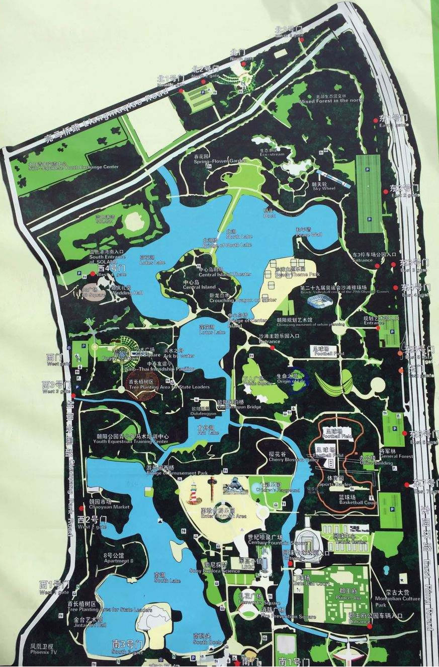 朝陽(yáng)公園建成的景點(diǎn)有中央首長(zhǎng)植樹(shù)林、將軍林、世界語(yǔ)林、國(guó)際友誼林、層林浩渺、水上游覽區(qū)、南門(mén)景區(qū)、勇敢者天地游樂(lè)園、歐陸風(fēng)韻、綠茵歡歌、生命之源、藝術(shù)廣場(chǎng)、濱水之洲、生態(tài)水溪等20余個(gè)景區(qū)、景點(diǎn)。