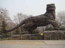 2009年,在獅虎山的北側(cè)豎起一座虎的銅雕,由雕塑藝術(shù)大師袁熙坤先生歷時兩年創(chuàng)作而成,名為“山君”。老虎長19.48米、高9.18米、重30噸。這也是北京動物園里第一座大型動物雕塑。