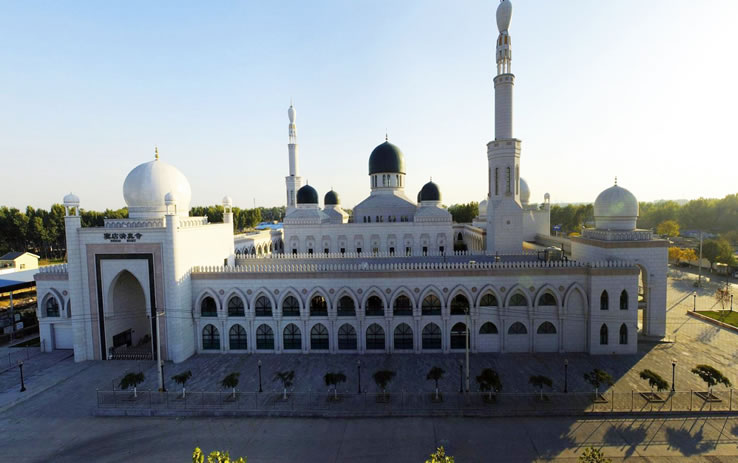 竇店清真寺 2011年8月9日,竇店新建清真寺破土動(dòng)工,2017年7月1日竣工,并于開(kāi)齋節(jié)當(dāng)天正式啟用。 竇店清真寺占地14958平方米,建筑面積12142平方米,能同時(shí)容納1500人禮拜。清真寺呈回字形布局,設(shè)有大殿、副殿、講堂、辦公室、接待室、會(huì)議室、展室、埋體房、洗浴室、餐廳等,大殿位于正中央,形成“眾星捧月”的建筑風(fēng)格。