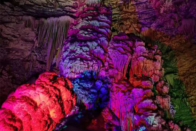 云水洞 云水洞位于上方山國家森林公園內,洞口海拔530米,為串珠狀近水平洞穴,是北京開發(fā)最早的溶洞。已探測的洞道長度613米,有7個大廳、108個自然形成的巖溶景觀。其中最著名的景觀“擎天柱”發(fā)育于第2洞廳,是一個高38米、直徑8米的巨型石筍,是全國石筍之冠。石筍兩側,有一排厚薄和長短各異的石鐘乳,可敲打演奏出許多優(yōu)美動聽的樂曲。