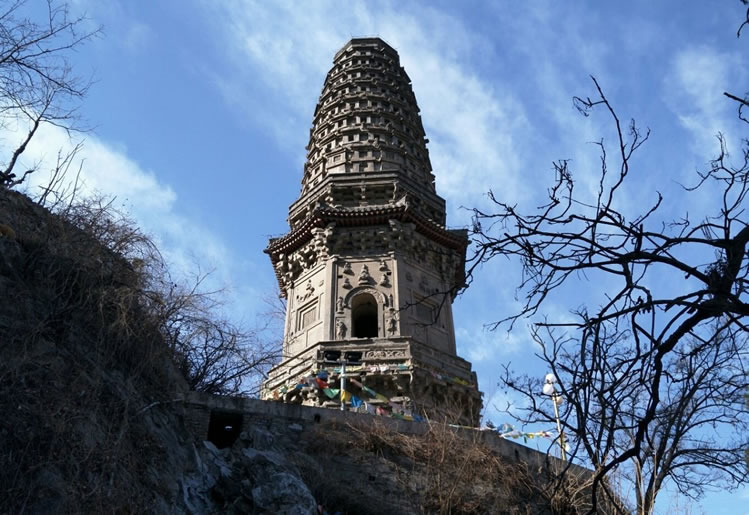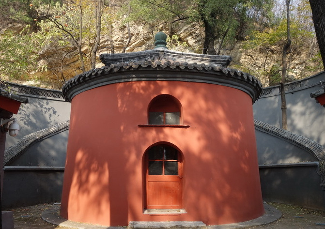 鐵瓦寺 鐵瓦寺位于河北鎮(zhèn)政府院內(nèi),是北京市重點(diǎn)文物保護(hù)單位,鐵瓦寺因殿頂鋪滿鐵鑄的瓦而聞名。該寺坐北朝南,背倚山巖,前臨大石河。 山門(mén)兩旁各有配殿二間,清水脊、石板頂,殿前各有一株古柏,院中間即為鐵瓦殿,是一座圓形的建筑,高6米,直徑近6米,殿墻刷成鐵紅色,券形門(mén)窗與大殿的圓柱形和諧相宜。攢尖式殿頂,鐵質(zhì)塔剎,頂尖由寶珠收攏,頂上自塔剎垂下六條鐵質(zhì)屋脊,將頂面均分成六個(gè)扇面形,頂面鋪蓋鐵瓦共458塊,每塊瓦長(zhǎng)0.31米,直徑0.13米,重約4公斤,總重量約1882公斤。鐵瓦大部分鑄于明代,個(gè)別是清康熙時(shí)期修繕時(shí)補(bǔ)上的。