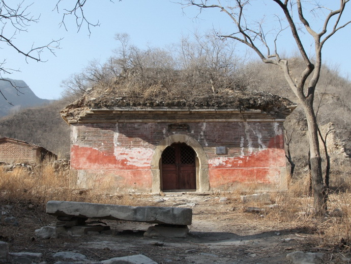 廣智禪寺 廣智禪寺坐西朝東,占地5畝左右,始建于明建文時(shí)期,清代曾修繕。原有兩進(jìn)院落,前低后高,梯狀布局。山門(mén)早已無(wú)存,門(mén)后為紅墻觀音寶殿,為全部磚石結(jié)構(gòu)的穹窿頂無(wú)梁殿,面闊9.50米,進(jìn)深8.40米(面闊與進(jìn)深相差不大,幾近正方形),據(jù)說(shuō)是北京地區(qū)跨度最大穹窿頂古建筑。四面無(wú)窗,只有正面一個(gè)青石拱券門(mén),廡殿頂灰筒瓦屋面,門(mén)上原有石額:“觀音寶殿”,2013年秋被盜走。殿內(nèi)原有漢白玉雕須彌座,現(xiàn)也已無(wú)存。