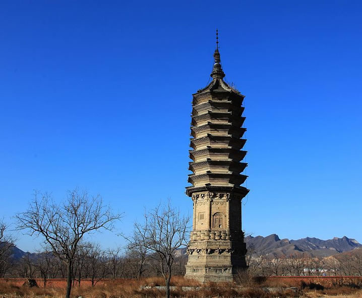 豆各莊塔 豆各莊塔位于青龍湖鎮(zhèn)豆各莊村,為房山區(qū)文物保護(hù)單位。始建于唐代。坐西朝東,是一座八角密檐式磚塔,通高約15米。塔身上有磚雕。八面磚雕輪、螺、傘、蓋、花、罐、魚(yú)、長(zhǎng)的佛八寶圖像。塔基上端為三層磚雕仰蓮。東面辟券門(mén),其它各面分別開(kāi)設(shè)磚雕的假門(mén)、假窗。塔身之上是八層仿樓閣密檐。第一層檐下裝飾斗拱。其它每?jī)蓪恿裰g做成仰、覆蓮瓣。檐子為疊澀式。塔剎由下大上小的兩層磚雕蓮花組成。這座塔的特點(diǎn)是采用蓮花裝飾的成分多:整個(gè)塔由基座上的三層仰蓮?fù)衅,門(mén)窗層以上每?jī)蓪娱苤醒胗盅b飾上下對(duì)稱的仰覆蓮瓣,共有八層;再用蓮花封頂。 風(fēng)景名勝