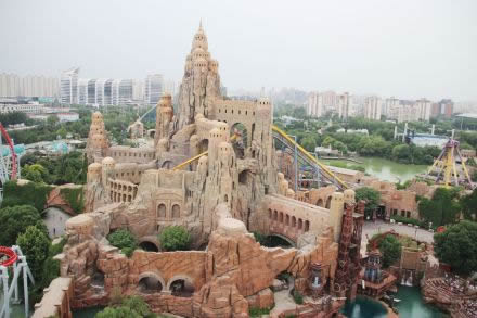 水晶圣城:60余米高聳的亞特蘭蒂斯水晶圣城被賦予開門見山、主導(dǎo)全局的功能,是北京歡樂谷的標(biāo)志性景觀,也是公園的制高點(diǎn)。 亞特蘭蒂斯人的水晶圣城不但是水晶的開采加工中心,同時(shí)也是將智慧與能量輸入水晶并不斷積累的寶庫。