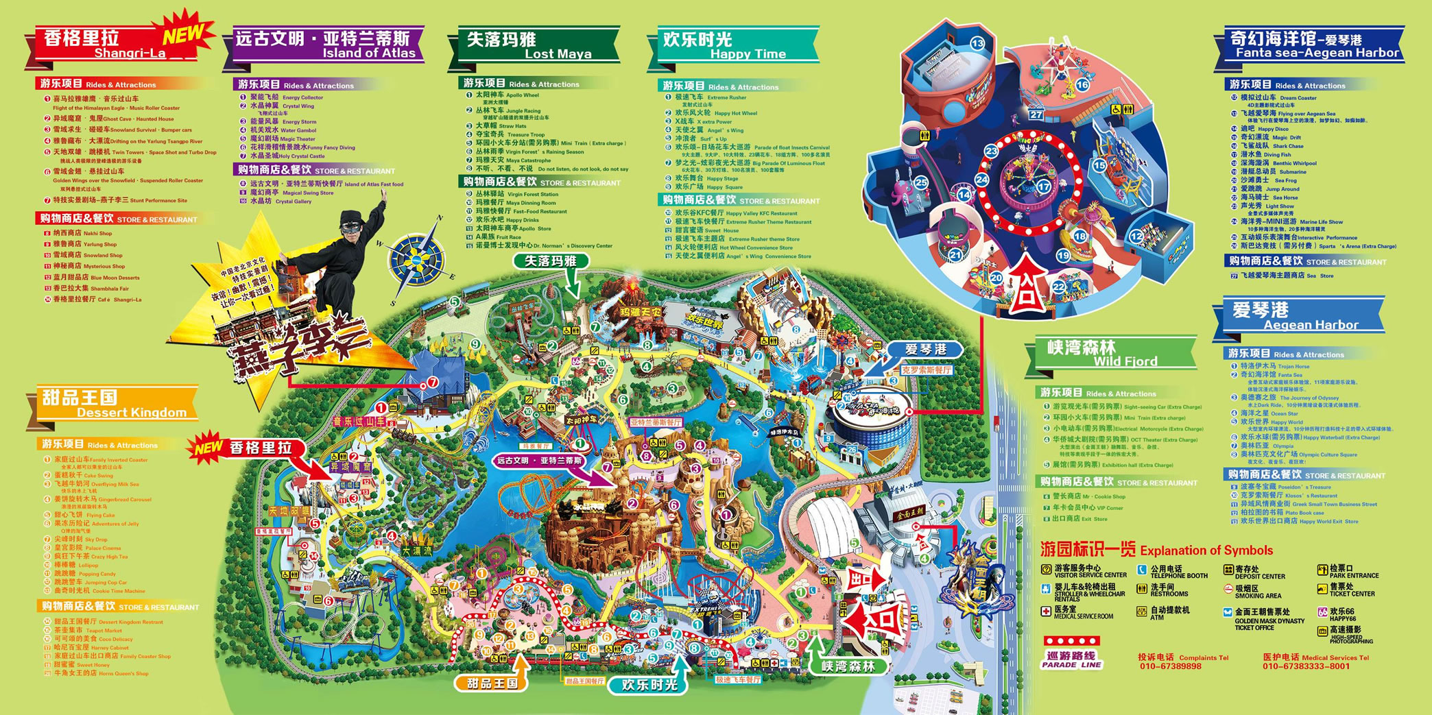 北京歡樂谷由峽灣森林、愛琴港、失落瑪雅、香格里拉、甜品王國(guó)、亞特蘭蒂斯、歡樂時(shí)光、七大文化主題區(qū)(另外還有位于愛琴港的奇幻海洋館、歡樂世界主題漂流三期項(xiàng)目)組成,通過主題文化包裝及故事演繹,以建筑、雕塑、園林、壁畫、表演、游樂等多種形式向游客展示了地球的生態(tài)環(huán)境與地域文化,園區(qū)內(nèi)精選世界經(jīng)典文明和創(chuàng)意智慧,設(shè)置了50余項(xiàng)主題景觀、10余項(xiàng)主題表演、30多項(xiàng)主題游樂設(shè)施、20余項(xiàng)主題游戲及商業(yè)輔助設(shè)施。30多萬平方米的綠化、8萬平方米的湖面給予歡樂谷良好的生態(tài)環(huán)境;七大主題區(qū)域給予歡樂谷世界各地的人文氣質(zhì);并且具有國(guó)際國(guó)內(nèi)雙重標(biāo)準(zhǔn)的安全檢測(cè)、人性化的服務(wù)配套和智能化的全園信息系統(tǒng)。。