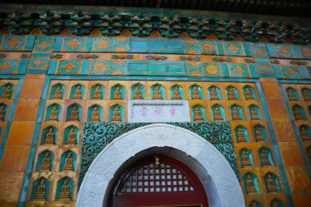 智慧海是萬壽山頂最高處一座宗教建筑,是一座完全由磚石砌成的無梁佛殿,由拱券結(jié)構(gòu)組成。建筑外層全部精美的黃、綠兩色琉璃瓦裝飾,上部用少量紫色、藍(lán)色的琉璃瓦蓋頂,尤以嵌于殿外壁面的千余尊琉璃佛更富特色!爸腔酆!币辉~為佛教用語,本意是贊揚(yáng)佛的智慧如海,佛法無邊。該建筑雖極像木結(jié)構(gòu),但實(shí)際上沒有一根木料,全部用石磚發(fā)券砌成的,沒有枋檁承重,所以稱為“無梁殿”。又因殿內(nèi)供奉了無量壽佛,所以也稱它為“無量殿”。