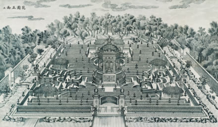 圓明園的位置在掛甲屯的北面,距暢春園約一里多路,即今北京大學(xué)的北邊,清華大學(xué)以西?滴鯐r(shí)的圓明園,里面有前湖、后湖等,其內(nèi)建有“牡丹臺(tái)”“天然圖畫”等園景。當(dāng)時(shí)圓明園還是一座藩賜園,規(guī)模不能超過皇帝的暢春園,所以建景不多,名聲也不大?珊髞黼S著乾隆皇帝的登基,清王朝的盛世的到來,在其多年陸續(xù)擴(kuò)建中,終于成為中國(guó)最宏偉的皇家園林。