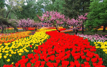 桃花園:建于1983年,占地面積4.2公頃,截止到2014年末,已收集展示觀賞桃花60余個(gè)品種5000余株,是世界上收集觀賞桃花品種最多的專(zhuān)類(lèi)園。桃花園的觀賞桃花,從樹(shù)型上分有直枝桃類(lèi)、帚桃類(lèi)、壽星桃和垂枝桃類(lèi)。從花型上看有單瓣型、梅花型、月季型、牡丹型和菊花型。主要品種有白花山碧桃、碧桃、絳桃、緋桃、紫葉桃、二色桃、人面桃、垂枝桃、壽星桃、灑金桃、菊花桃等品種。桃花花期自四月初一直開(kāi)到五月初。