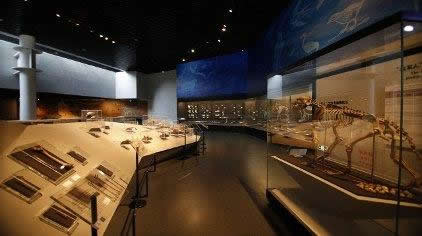 周口店北京人遺址博物館系統(tǒng)地向我們介紹了60萬(wàn)年前的“北京人”、10萬(wàn)年前的“新洞人”、18000年前的“山頂洞人”的生活環(huán)境、生活狀況。序廳正面為龍骨山立體模型,展柜中擺放著周口店地區(qū)從4億年前到1億年前的各種巖石標(biāo)本,反映了該炮區(qū)滄海桑田的地質(zhì)變化過(guò)程。