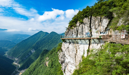 九重天景區(qū)位于豐都縣雙路鎮(zhèn)蓮花山,國家AAAA級景區(qū),距縣城15公里,景區(qū)核心景點(diǎn)玻璃棧道全長3.5公里,距離龍河谷底900余米,一座長達(dá)200余米、懸空高度達(dá)900余米的5D玻璃吊橋聳立于棧道之上,景區(qū)還有懸崖秋千、飛拉達(dá)攀巖、網(wǎng)紅大秋千等體驗(yàn)項(xiàng)目,大人小孩皆可體驗(yàn)。另外景區(qū)配備了天空之境、玫瑰長廊、風(fēng)車長廊等網(wǎng)紅打卡點(diǎn),讓網(wǎng)紅打卡者流連忘返。觀龍河峽谷絕美風(fēng)光,體驗(yàn)高空項(xiàng)目的驚險刺激。