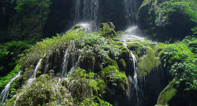 大大小小的泉水順著苔鮮爭相跳躍而下,在陽光的投射下熠熠生輝,讓你想起古人所云:“大珠小珠落玉盤。”人在峽中走,水在峽中飛,時(shí)隱時(shí)現(xiàn)的陽光,飛泉流瀑濺起的水霧,奇形怪狀的石乳形成一片如夢(mèng)如幻的世界,這浪漫之旅,讓人留連忘返,不忍離去。