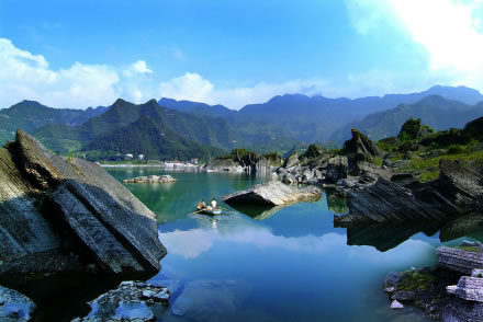 重慶黔江小南海國(guó)家地質(zhì)公園,位于重慶市黔江區(qū)小南海鎮(zhèn)南海村,重慶與湖北交界處,距黔江城北部30余千米。是一個(gè)融山、海、島、峽諸風(fēng)光于一體的高山淡水湮(堰)塞湖泊,也是中國(guó)國(guó)內(nèi)迄今保存最完整的一處古地震遺址。