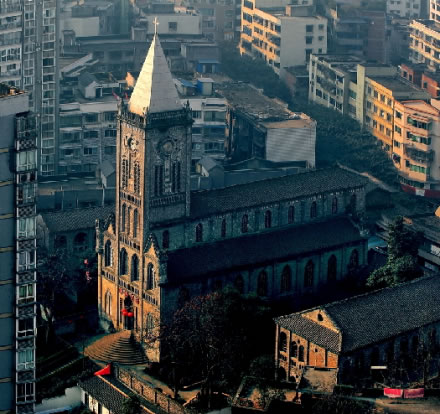 重慶市榮昌區(qū)天主教堂建成于1915年,是利用“余棟臣教案”的賠款修建。教堂位于榮昌縣城后西街,主體為哥特式建筑風(fēng)格,由圣堂主體樓、神父樓和教會(huì)學(xué)校三部分組成,后多遭破壞、占用,現(xiàn)存約四分之一。重慶榮昌縣天主教堂解放后被征用,1980年恢復(fù)宗教活動(dòng)。現(xiàn)為省級(jí)文物保護(hù)單位,電影《1942》曾在此取景。該教堂于1915年由法國(guó)人設(shè)計(jì)并修建,主體建筑為歌特式建筑,是西南地區(qū)最大且保存最完整的教堂。