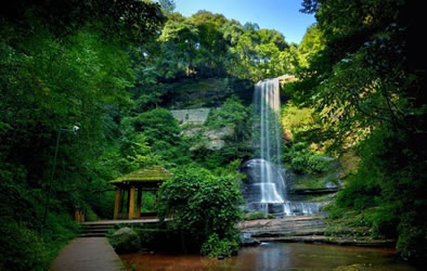 望鄉(xiāng)臺瀑布高158米,寬48米,迄今為中國單級落差最大的寬幅瀑布,比黃果樹瀑布高出一倍以上,被譽為“華夏第一高瀑”“中國最美十大瀑布”,是四面山標志性景點。瀑布不僅落差大,水聲如雷,震山撼谷,而且只要是在晴朗之日,經陽光的折射,彩虹融入飛瀑,在山谷間架起彩虹橋。瀑布周圍森林植被環(huán)繞丹霞畫壁,整體輪廓酷似心形,是全球最大的自然形成的瀑布類心形丹霞景觀,被譽為“天下第一心”。在望鄉(xiāng)臺瀑布正對面,與“天下第一心”相呼應,是一個巨大的巖洞,由丹霞地貌風化腐蝕成形,形似“巨眼”,被譽為“天下第一眼”。曾名逍遙洞,傳說天上逍遙二仙途經此處,見此地如此美景,于是作法開辟洞穴,供閑暇時欣賞美景。望鄉(xiāng)臺瀑布通過采用聲光電技術,在夜間經148組大型LED環(huán)保燈具照射成為“七彩瀑布”,是全球第一例七彩燈光瀑布,也是中國唯一能在夜間觀看的大型燈光瀑布。瀑布觀景公路長達3千米,游客可以在旅游車前進過程中,由遠而近、自下而上地從不同角度、不同層次觀賞。