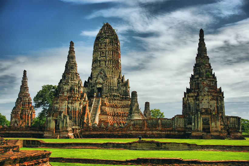 大城府(Phra Nakhon Si Ayutthaya) 大城府位于泰國中部,下轄16個縣,面積2556.6平方千米,人口約80萬。在泰國首都曼谷以北約80千米,湄南河、華富里河、巴塞河三河交匯,形成了一個天然河流島。漫步島上,一座座古老佛塔和寺廟,磚紅色的殘垣斷壁飽經(jīng)風霜,訴說著這里曾經(jīng)的輝煌。這里是泰國世界文化遺產(chǎn)之一——大城古城遺址的所在地。 大城古城始建于1350年前后,是泰國歷史上第二個封建王朝大城王朝的國都。14至18世紀,大城是一座繁榮富裕、人口稠密的大都市,同時也是重要的商業(yè)和宗教中心,僅主島區(qū)域的各式建筑就有超過3000棟。1767年,大城因戰(zhàn)爭而損毀,只有石質佛塔、寺廟和宮殿得以保存。從1935年開始,泰國文化部藝術廳陸續(xù)開展對大城古城遺址的挖掘和保護工作。1976年,泰國政府宣布在古城遺址基礎上建立大城歷史公園,在大約20年的時間里,公園逐步從原有的289公頃擴大到了480公頃,最終覆蓋全島以及周邊部分村鎮(zhèn)。1991年,大城歷史公園最初的289公頃區(qū)域,包括瑪哈泰寺、玉佛寺、柴瓦納蘭寺等重要遺跡入選聯(lián)合國教科文組織的世界遺產(chǎn)名錄。大城古城遺址成為泰國僅有的3個歷史類世界文化遺產(chǎn)之一。聯(lián)合國教科文組織認為,歷史悠久的大城古城見證了泰國民族藝術誕生的杰出時代。