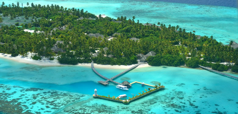 白金島 白金島(Hudhuran Fushi)在北馬累群島,距離馬累26公里,從馬累國際機(jī)場坐快艇30分鐘就到酒店了。衍生詞Hudhu意思是“白色的”,“Ran”的意思是“金子”。白金島酒店環(huán)繞于茂盛的棕櫚樹之中,可以看到許多不同種類的熱帶動物與植物。