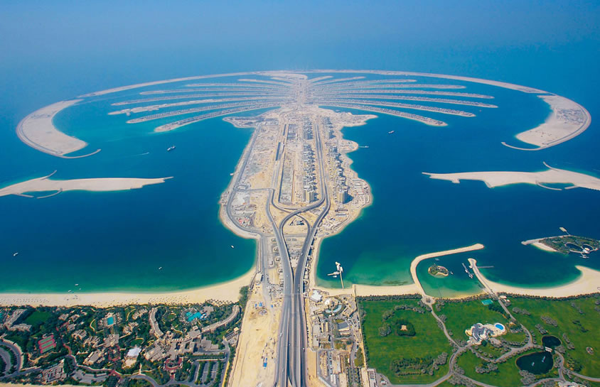 棕櫚島 棕櫚島是建立在迪拜的三座人工群島的總稱。它分為朱美拉棕櫚島、杰貝阿里棕櫚島、迪拉人工島。 每個(gè)島上都有大量的別墅、公寓發(fā)售,為整個(gè)迪拜酋長國增添了諸多供不應(yīng)求的海灘。耗資140億美元打造而成的迪拜棕櫚島被譽(yù)為“世界第八大奇跡”。 每座島嶼包括三部分:“樹干”、“樹冠”和新月型圍壩。島上還將種植12000棵棕櫚樹,這些樹苗正在位于朱梅拉的苗圃里栽培。整座島嶼就是一個(gè)巨大的避暑勝地和游玩天堂,上面擁有2400套海邊住房,可以入住5000人。另外,還有運(yùn)動(dòng)場、健身房和電影院等設(shè)施。