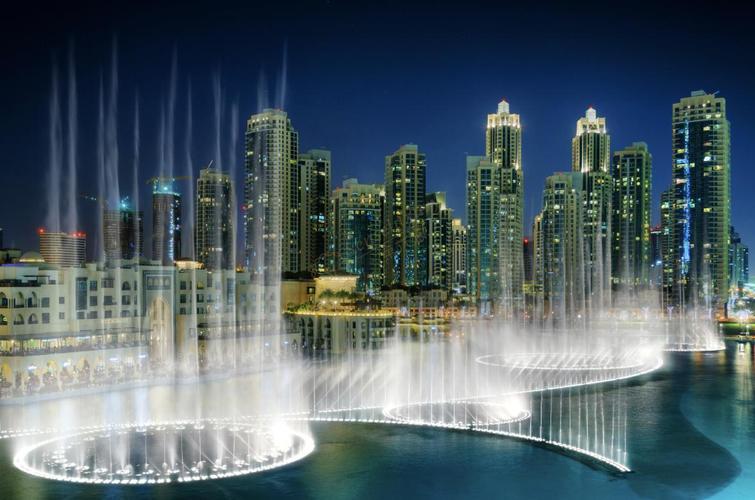 迪拜音樂噴泉 迪拜音樂噴泉(Dubai Fountain)是世界最大的噴泉,也是最壯觀的噴泉。 迪拜音樂噴泉由原世界第一美國Bellagio噴泉的制造商WET公司設(shè)計(jì)的,總投資2.18億美元,總長度為275米,最高可以噴到150米,相當(dāng)與一棟50層樓的高度。據(jù)報(bào)道迪拜音樂噴泉的燈光可以在20英里的內(nèi)任何一個(gè)地方看到,讓它成為中東地區(qū)最亮的焦點(diǎn)。 該噴泉會(huì)噴射2.2萬加侖的水,并配有6600個(gè)燈光以及50個(gè)彩色投影機(jī)。噴出的水柱有1000多種變化,可以說是名副其實(shí)的千變?nèi)f化。伴隨著數(shù)首阿拉伯以及來自世界各地的歌曲,噴灑的水柱像是在人們面前跳著優(yōu)雅的舞蹈,每一場使用的音樂不同、編排的舞姿也不同。 音樂噴泉平日每天從晚上6點(diǎn)到10點(diǎn),每半小時(shí)表演一次,每次表演長達(dá)3-5分鐘,周末從晚上6點(diǎn)表演到11點(diǎn)、并在晚上9點(diǎn)后增加至每20分鐘表演一次。