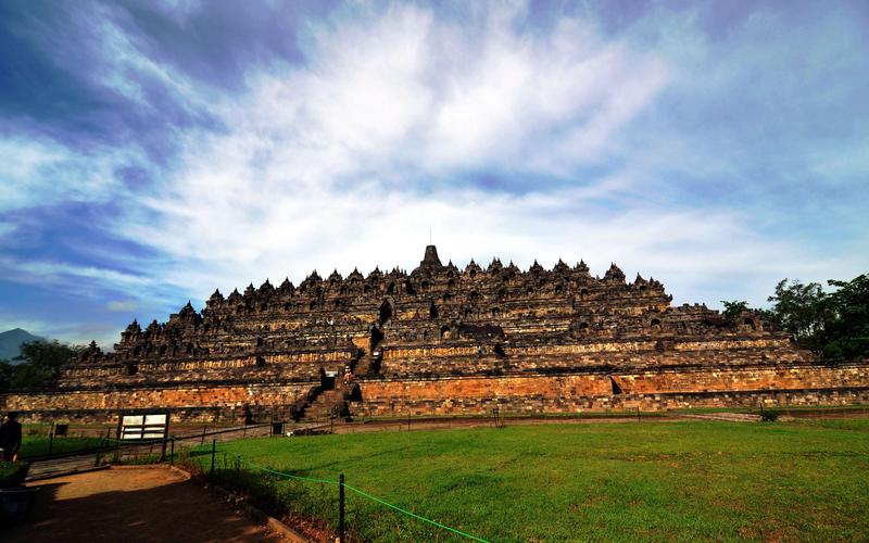 婆羅浮屠寺廟群 婆羅浮屠位于東南亞的印度尼西亞,大約建于公元750年至850年間,由當時統(tǒng)治爪哇島的夏連特拉王朝統(tǒng)治者興建。“婆羅浮屠”這個名字的意思很可能來自梵語"Vihara Buddha Ur",意思就是“山頂?shù)姆鹚?rdquo;。婆羅浮屠大約建于九世紀,公元1006年因火山噴發(fā)而被埋入地下。直到806年后的1812年被英國人萊佛士發(fā)現(xiàn),婆羅浮屠得以重見天日。與中國的長城、印度的泰姬陵、柬埔寨的吳哥窟并稱為古代東方四大奇跡。 婆羅浮屠是作為一整座大佛塔建造的,從上往下看它就像佛教金剛乘中的一座曼荼羅,同時代表著佛教的大千世界和心靈深處。整個建筑分為三層,基座是五個同心方臺,呈角錐體;中間是三個環(huán)形平臺,呈圓錐體;頂端是佛塔。四周圍墻和欄桿飾以淺浮雕,總面積2500平方米;圍繞著環(huán)形平臺有72座透雕細工的印度塔,內(nèi)有佛龕,每個佛龕供奉一尊佛像。婆羅浮屠寺廟群在聯(lián)合國的援助下于1970年得以重建,現(xiàn)已經(jīng)成為印度尼西亞最著名的景點之一。