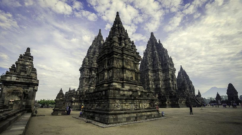 巴蘭班南 巴蘭班南(Prambanan)位于日惹市郊,被譽為爪哇最美麗的印度教寺廟古跡,亦是印度尼西亞最大最美的印度教寺廟,是記錄印度尼西亞人祖先燦爛文化的載體,與臨近的婆羅浮屠一起被列入聯(lián)合國世界文化遺產(chǎn)。 巴蘭班南寺廟群由240座廟宇組成,大部分已經(jīng)淪為一堆瓦礫,但一些主要的廟宇在經(jīng)歷了天災(zāi)人禍的滄桑變遷后,在人們的努力下得以重建,又煥發(fā)出昔日的風采。 巴蘭班南寺廟共有8個圣殿,其中三個主殿分別祭祀著濕婆、毗濕奴和羅摩這三位印度教中的主神。中心院落里有三個主殿。濕婆殿高為46.5米,里面是濕婆的妻子杜爾加的神像,也是最高的神殿。濕婆殿的北側(cè)是維斯奴廟,南側(cè)是婆羅吸摩廟,前面是楠迪廟。在毗濕奴和婆羅吸摩廟的前面是瓦哈諾廟,阿皮特廟位于北側(cè),其南側(cè)與廟宇相接。在主廣場每一個大門前面的東西兩側(cè)有四個克利爾廟;而在主廣場的四個角上均各有一個小廟宇。