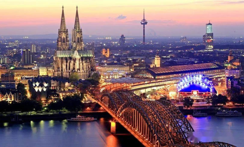 科隆 科隆市(Köln/Cologne)是德國的第四大城市,人口100.7萬,面積405平方公里,僅次于柏林、漢堡和慕尼黑,是一座大都市,市中高樓大廈鱗次櫛比,是一個繁華的商業(yè)城市,也是德國西部萊茵河畔歷史文化名城和重工業(yè)城市。 一譯“科倫”。公元前38年建為古羅馬要塞。曾是漢薩同盟主要成員。因位居歐洲東西和南北交通要沖,中世紀時經(jīng)濟已頗發(fā)達。十九世紀中葉后,隨魯爾煤田開發(fā)和鐵路修筑,發(fā)展更迅速。巨大水陸交通樞紐,重要的河港?坡-波恩航空站位于東南郊,市內(nèi)有通往布魯塞爾、波恩等地的直升飛機場。工業(yè)有軍工、冶金、機械、化學、制藥、煉油、紡織、食品等部門。全國重要褐煤產(chǎn)地之一,建有大火電站。全國金融中心之一。第二次世界大戰(zhàn)時遭嚴重破壞。多古跡,如著名科隆大教堂(圓頂上的兩塔尖高達161米)、羅馬時代地下廣場等。馬克思和恩格斯曾在此創(chuàng)辦《新萊茵報》。 科隆還是一個以羅馬式教堂和哥特式大教堂聞名于世的城市。屹立在萊茵河邊的科隆大教堂高157.31米,它有兩座哥特式尖塔,北塔高157.38米,南塔高157.31米。科隆大教堂是世界上最高的雙塔教堂,它已成為科隆市的象征和游客們向往的名勝之地。站在高高的塔頂極目遠望,萊茵河猶如一條白色的緞帶從旁飄過。