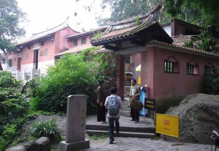 這里巨石峭立,古木參天,近旁的天侶呈瑞,是兩株不同的樹(shù)種緊緊地抱在一起,一棵為重陽(yáng)木、一棵是榕樹(shù),樹(shù)根相盤(pán),樹(shù)身相抱,樹(shù)丫纏繞,如膠如漆,歷經(jīng)歷300多年,宛如一對(duì)忠貞不渝的戀人。