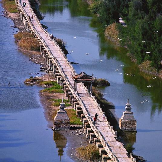 安平橋,曾用名五里橋、西橋、安海橋,是中國福建省泉州市境內(nèi)連接晉江市和南安市的一座橋梁,是世界上中古時代最長的梁式石橋,也是中國現(xiàn)存最長的海港大石橋,是古代橋梁建筑的杰作,享有“天下無橋長此橋”之譽(yù)。