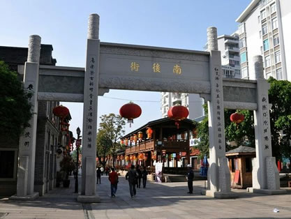 福州南后街北起楊橋路口,南至吉庇路達(dá)澳門橋,全長(zhǎng)1000米左右,是福州城內(nèi)“三坊七巷”的中軸。它的東側(cè)有七巷,西側(cè)有三坊,是從福州三坊七巷興起至民國(guó)期間主要的商業(yè)街,由北到南路面商賈云集。
