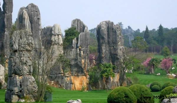 洪云山:位于鱗隱石林景區(qū)西部湖峰坡麓地帶,距鱗隱石林1.5公里,面積約0.56平方公里。上部有溶斗洼地,其中布滿著多種形態(tài)的石芽和石柱,仿佛是天然的盆景園。匯集于溶斗洼地內(nèi)的地表水流,通過(guò)灰?guī)r裂隙下滲,自其下部的洪云洞流出,清澈的泉流終年不斷。洪云洞內(nèi)的鐘乳石等化學(xué)溶積物仍在發(fā)育之中,色彩繽紛,光耀奪目,頗為迷人。"主要景點(diǎn)有:桃源活水、巖峽巖、金雞報(bào)曉、老虎撲食、玉兔望月、松鼠伏壁等30多處,十分形象逼真。