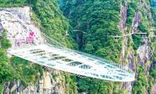 瀑布斜上方是新建設(shè)的玻璃觀景臺(tái)——天空之心,站在上面可俯瞰岱仙瀑布全景,有“人在空中走,景在腳下游”的美妙體驗(yàn)。這座懸空高度達(dá)314米的觀景臺(tái)位于岱仙瀑布斜上方,外挑懸空長度約52米,面積520平方米。