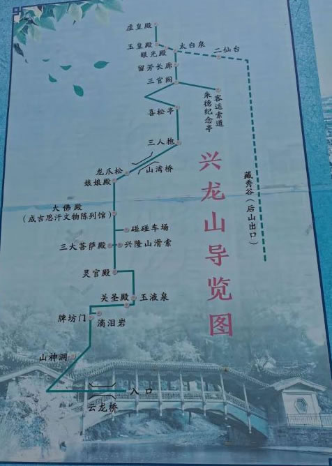 唐宋時,興隆山神殿甚多,香火旺盛,稱“洞天福地”。清代時,這里廟宇樓閣,或依山面壁,或深藏密林,畫棟雕梁,飛檐紅柱,甚為壯觀。后大多被毀,僅存清代所建飛跨興隆峽的云龍橋(臥橋)一座。清康熙年間取復(fù)興之意,改名“興隆山”。本世紀(jì)五十年代,全山亭臺樓閣以及廟宇達(dá)70多處,景點24處,成為佛、道勝地。