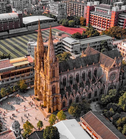 石室圣心大教堂,是天主教廣州教區(qū)最大教堂,國(guó)內(nèi)現(xiàn)存最宏偉的雙尖塔哥特式建筑之一,也是全球四座全石結(jié)構(gòu)哥特式教堂建筑之一(另外三座是巴黎圣母院、威斯敏斯特教堂、科隆大教堂),由于教堂的全部墻壁和柱子都是用花崗巖石砌造,所以又稱之為“石室”或“石室耶穌圣心堂”、“石室天主教堂”。是廣東省重點(diǎn)文物保護(hù)單位。