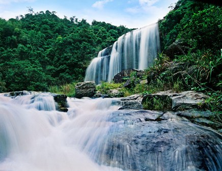 黃滿寨瀑布群旅游區(qū)是國家4A級旅游景區(qū),位于廣東省揭陽市揭西縣。黃滿寨瀑布群旅游區(qū)自上而下共分五級:一級是寬82米、落差56米的飛虹瀑布,三股水流分別從頂端飛懸而下,盛水時(shí)節(jié),更是連成一片,形若貴州黃果樹瀑布。繼續(xù)向前,下行約百米又形成銀河崆瀑布,飛瀑撞擊巖石。沿水往下是落差約120米的落九天瀑布,兩邊巖石高起。在下游是三疊谷瀑布,水流在三個(gè)落差各6米的斷崖處唱陽關(guān)三疊,三個(gè)瀑布錯(cuò)角相連。最下為第五級瀑布斗方崆瀑布。黃滿寨瀑布群景區(qū)所在的山谷比較幽深,山間林木茂盛,瀑布群鑲嵌在深山峽谷中。