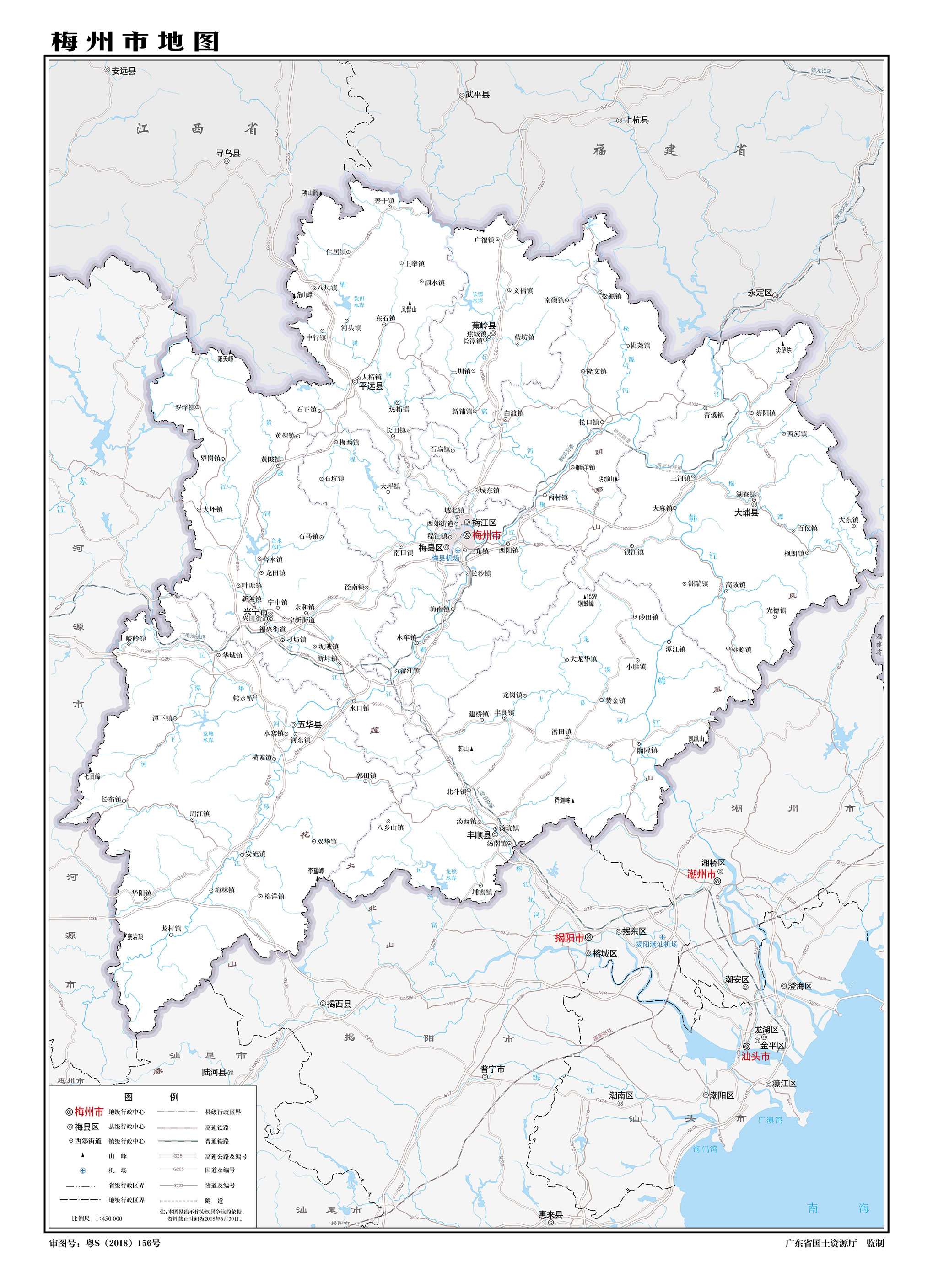 梅州市轄2個市轄區(qū)、5個縣,代管1個縣級市: