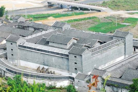 九棟十八井位于韶關(guān)市新豐縣馬頭鎮(zhèn)潭石村(新豐縣馬頭鎮(zhèn)G105國道旁與大廣高速馬頭出口交叉口西北側(cè)),始建于清康熙年間,占地面積2.5萬平方米,總建筑面積1.5萬平方米。九棟十八井為三進院落四合院式布局,很有氣勢。建成橫三棟、縱三棟,名謂九棟,共有一百六十六間房屋;每三棟各有六口天井,共為十八井,故稱九棟十八井。建筑群由門樓、前院排屋、圍墻、主體建筑連接圍合而成,并內(nèi)設(shè)有書屋(已被毀)、水磨房、碾米房、織布房等。硬山頂門樓北向,門上石匾額陽刻“棣萼樓”;主體建筑群由三組建筑并列組成,中心組群為祖祠,左右兩組為支祠。三組建筑平面規(guī)制基本相同,是以廳堂為軸心,左右各配置天街、串屋,天街均向正面開門;祖祠正面兩角各設(shè)一角樓,二層,鍋耳山墻;左右支祠外角各設(shè)一角樓,二層,山字山墻。祖祠、支祠廳堂均三進,兩支祠進深略短。其上中下三廳均為抬梁式木構(gòu)架,木構(gòu)件多有精美雕飾。該圍屋規(guī)模龐大,布局嚴謹,外觀雅致,工藝精細,雕飾精美,是新豐境內(nèi)保存較完整的客家圍屋,具有較大的歷史、建筑工藝等研究價值,2012年列入新豐縣不可移動文物名錄。
