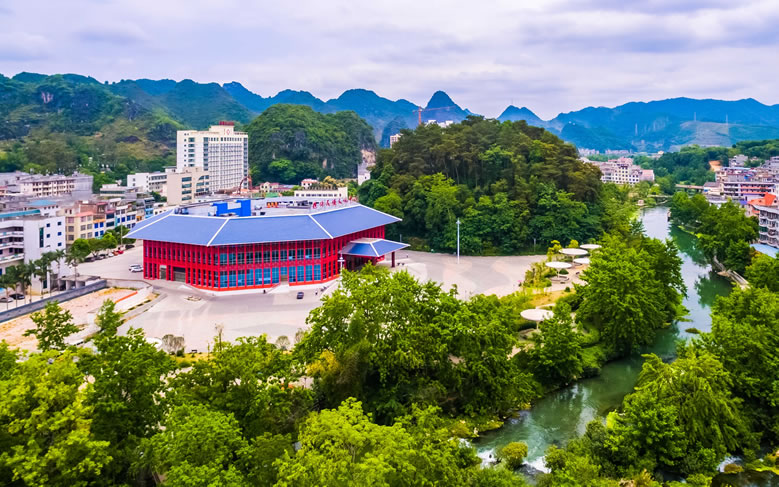 德保芳山文化體育公園范圍包括原九曲橋公園及芳山,位于縣城東部中心城區(qū),由鑒河景觀廊道串連而成,其間有山地、河流等各種豐富的自然景觀。公園總占地面積16.99公頃,其中綠化面積15.69公頃,水體面積3.361公頃,景區(qū)內(nèi)旅游資源豐富,這里空地清新,有蜿蜒清澈的河流、郁郁蔥蔥的草木,宛如世外桃源;這里歌圩之風(fēng)盛行,民族風(fēng)情濃郁,節(jié)慶活動豐富多彩,是一個集濱河觀光、文化體驗(yàn)、休閑度假、健身娛樂、生態(tài)科普于一體的多功能旅游景區(qū)。