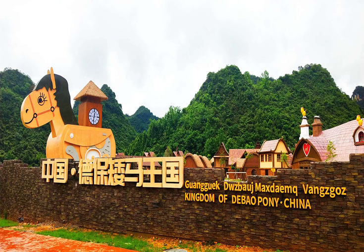 德保矮馬王國景區(qū)位于德?h燕峒鄉(xiāng)興旺村坡寧屯(吉星巖AAAA景區(qū)出口處),一期開發(fā)建筑面積400畝,建設(shè)內(nèi)容有矮馬王國競技場、萌寵部落、矮馬小鎮(zhèn)、矮馬游樂園、矮馬劇場、木屋酒店、帳篷酒店等項(xiàng)目,涵蓋動漫賽事、親子游樂、互動體驗(yàn)、教育科普、文化演藝等于一體。矮馬王國景區(qū)從德保矮馬“萌”的核心特色出發(fā),將德保矮馬IP化,以親子卡通化的形象表現(xiàn)手法,創(chuàng)意“矮馬保保”的主人公形象,將德保矮馬打造成為華南萌主;以故事場景化的主題敘事手法,構(gòu)建“矮馬保保”和他的小伙伴們的王國樂園,打造以德保矮馬為IP的主題家庭親子旅游目的地。讓孩子置身于童話故事中,兼具開發(fā)智力、認(rèn)識自然的同時,還能兼顧大人玩耍與視覺審美,是全家人親子互動、休閑娛樂的地方。