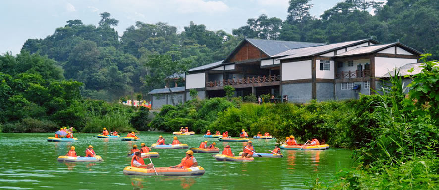 平果鴛鴦灘漂流景區(qū)位于平果縣馬頭鎮(zhèn)金顯村,距南寧市區(qū)120公里,距平果縣城區(qū)15公里,鴛鴦灘漂流景區(qū)擁有瀨江河不可多得的自然溪谷景觀。漂流河段全長4.8公里,流經(jīng)八彎九灘,多半河段被森林全覆蓋,景區(qū)內森林茂密,藤蘿垂懸,空氣清新自然,空氣中負氧離子含量達10000多個。