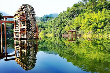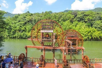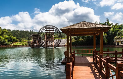 位于八寨溝景區(qū)大門外,是一個(gè)人工湖,湖面寬廣,三面環(huán)山,景色秀麗,可乘木船游覽龍珠湖風(fēng)光,混凝土大壩外有人工瀑布,瀑布下面是深水潭,有一架仿古大水車,在流水驅(qū)動下不停轉(zhuǎn)動。