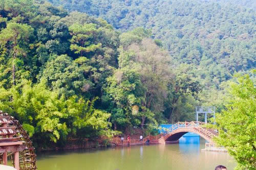 情侶的可再走5分鐘,到鴛鴦池泡山泉,泉水清澈,綠蔭掩映,是情侶沐浴之佳境(1小時(shí)),再往上可到達(dá)最大的山泉浴池新月潭、會仙池、將軍潭,新月潭、會仙池潭清水淺,適合兒童及水性不好的游客戲水;將軍潭水較深。