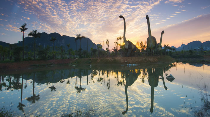 龍谷灣恐龍主題公園是國家AAAA級(jí)旅游景區(qū),位于扶綏縣上龍大道999號(hào),距南友高速公路扶綏出口3公里。占地面積3000畝,是龍谷灣旅游休閑度假區(qū)的一期工程,于2017年元旦建成開業(yè)。公園由遠(yuǎn)古呼喚、多媒體體驗(yàn)中心、動(dòng)感地帶、兒童王國、恐龍谷等板塊組成,是集科普研學(xué)、旅游觀光、游樂體驗(yàn)為一體的亞洲最大的恐龍主題公園。龍谷灣旅游休閑度假區(qū)瞄準(zhǔn)“3.5小時(shí)經(jīng)濟(jì)圈”休閑度假市場(chǎng),突出恐龍文化和壯族民俗文化,規(guī)劃建設(shè)主題公園、特色小鎮(zhèn)、商業(yè)綜合體、田園綜合體、康養(yǎng)旅居城、體育旅游、智慧旅游、國際教育、民宿、汽車旅游營地等,形成龍谷灣恐龍公園、國際慢生活商業(yè)中心、錦繡八桂田園綜合體、國際酷玩休閑世界、國際共享康養(yǎng)旅居城五大區(qū)域。