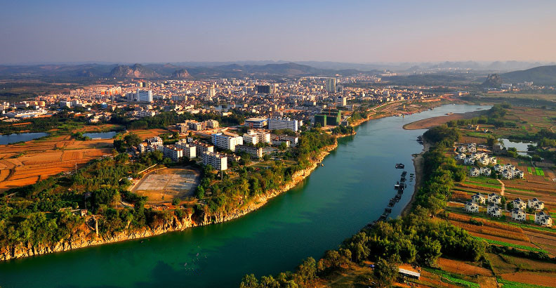 地形地貌 扶綏縣境地勢(shì)南北高,中間低,由西向東傾斜。南部和北部是高山土嶺,峰叢谷地,中部為低丘臺(tái)地,間有孤峰。巖溶地層分布很廣,約占全縣土地面積的三分之二。