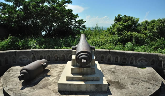 白龍古炮臺(tái)位于防城區(qū)江山鄉(xiāng)白龍尾半島南端,由“白龍臺(tái)”、“銀坑臺(tái)”、“龍珍臺(tái)”和“龍?bào)J臺(tái)”四座炮臺(tái)組成,是清代炮臺(tái)。清政府為鞏固海防,清光緒十三年(1887年)由張之洞親自率部到東興、竹山、江平、白龍尾勘察選址,決定在白龍尾修建炮臺(tái),由海口營(yíng)管帶陳良杰督建,清光緒二十年(1895年)修成。扼北部灣水道入防城、東興咽喉,守護(hù)防城江口、北倫河口,與企沙鎮(zhèn)的石龜頭炮臺(tái)互為犄角,俗稱(chēng)“龜蛇守水口”,和位于縣城西部邊境沿線咽喉的那梭炮臺(tái)一起,組成了一個(gè)較為完整的沿海防御體系。2006年5月,納入連城要塞遺址和友誼關(guān),公布為國(guó)家級(jí)文物保護(hù)單位。