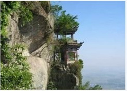 走完棧道,越過密密叢林,可到“聽松軒”。這里松林如海,山風(fēng)吹拂,發(fā)出陣陣濤聲,象平地?fù)P沙,象幽谷夜雨,象大海恕潮,象深山虎嘯……前人有詩為這一情景寫照:“倏然一榻臥山高,夢熟旋聞眾虎嗥,起視千林搖曳動,大風(fēng)吹激怒于潮!
